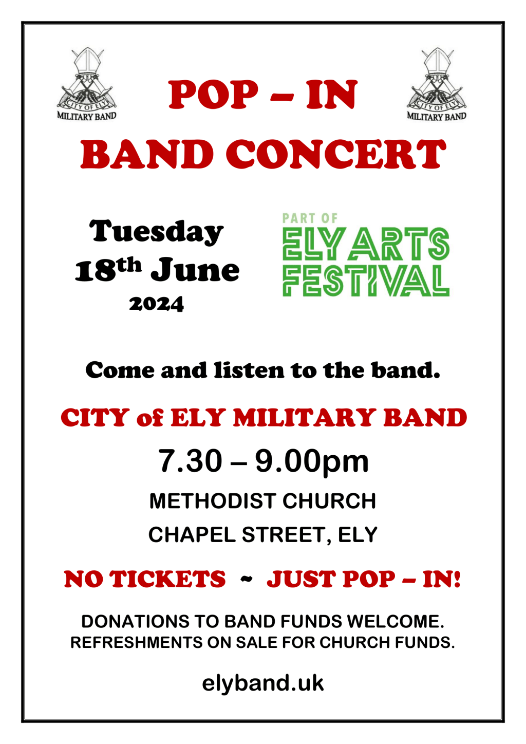 Announcing a pop-in concert as part of the Ely Arts Festival!